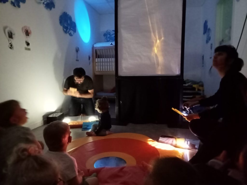 Dans le cadre de leur récente création à destination de la petite enfance Un Rien Coloré (Festival Marmaille 2024), les artistes ont proposé de nombreux laboratoires artistiques dans les crèches, RPE, centre de loisirs, écoles maternelles auprès des professionnel.les de la Petite Enfance et des familles. Une expérience riche en humanité et fortement inspirante. Ils ont été accueillis par le dispositif passerelle avec le Festival Mondial des Marionnettes de Char- leville-Mézières, par la scène conventionnée art jeunesse et enfance Lillico-Rennes, la Ville de Lorient, le Dispositif Berce ô Culture du CIAS Loudéac Communauté. Ces temps d’expérimentation ont confirmé leur envie de donner accès à la culture et à la poésie dès le plus jeune âge. C’est en suivant cette impulsion que cette petite forme légère, adaptable à tous types de lieux, est née.