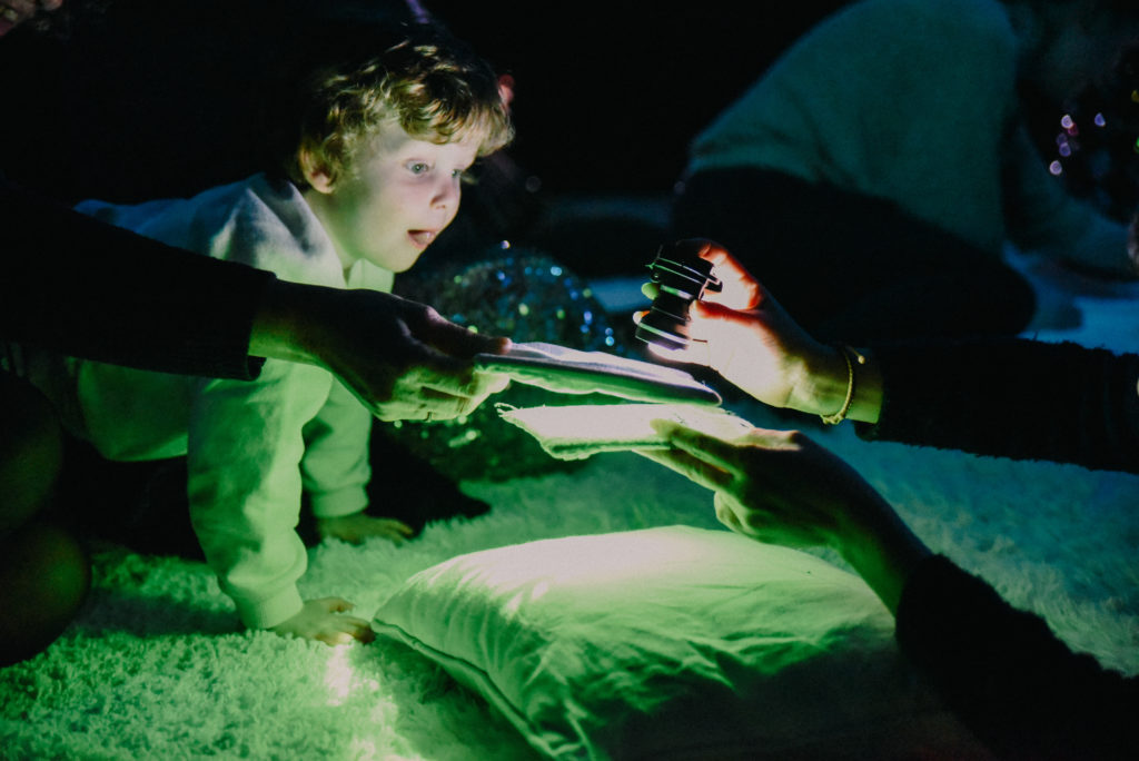 Dans le noir, Petit rond est seul et s’ennuie. Que faire quand il n’y a rien ? Passée la peur du vide, il se met l’écoute de son monde intérieur. Peu à peu, les portes de son imaginaire et de sa créativité s’ouvrent dans un monde merveilleux et coloré. Ce spectacle déplace l’accent de la narration vers l’expérience commune, où chaque enfant et adulte a sa place pour vivre l’instant présent. La lumière, la couleur et l’ombre ne servent pas à illustrer, mais construisent, avec le public, une dramaturgie sensorielle et poétique.